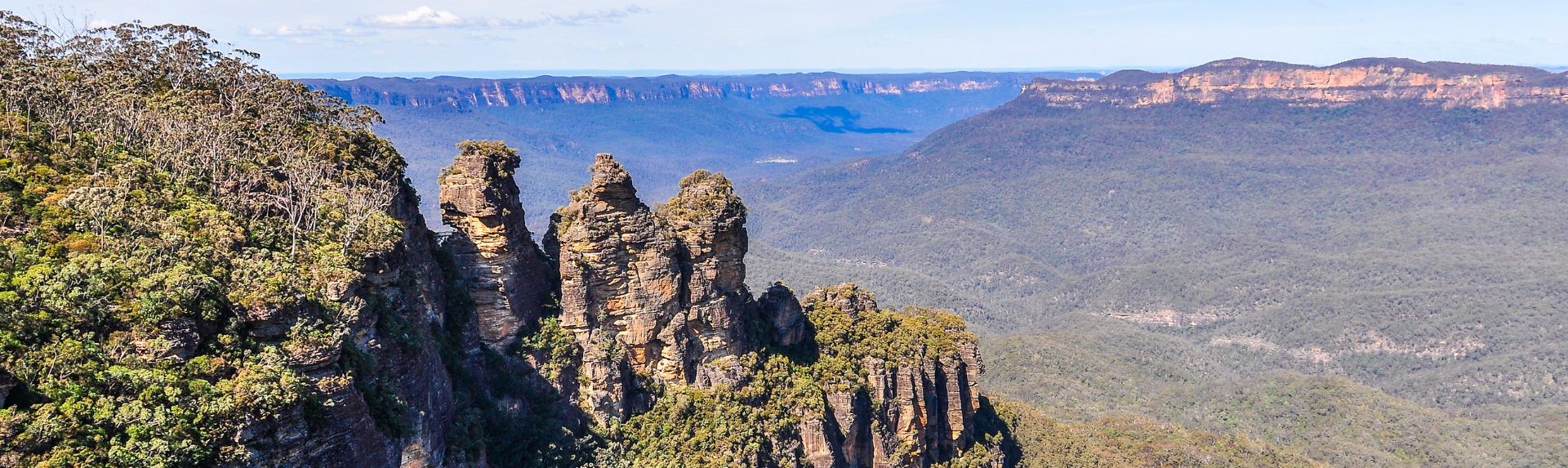 When volcanoes erupted through the layers of rock, the famous ridges of the Three Sisters were created. Over time, wind and rain have eroded the cliffs of the Blue Mountains into how we see them today.